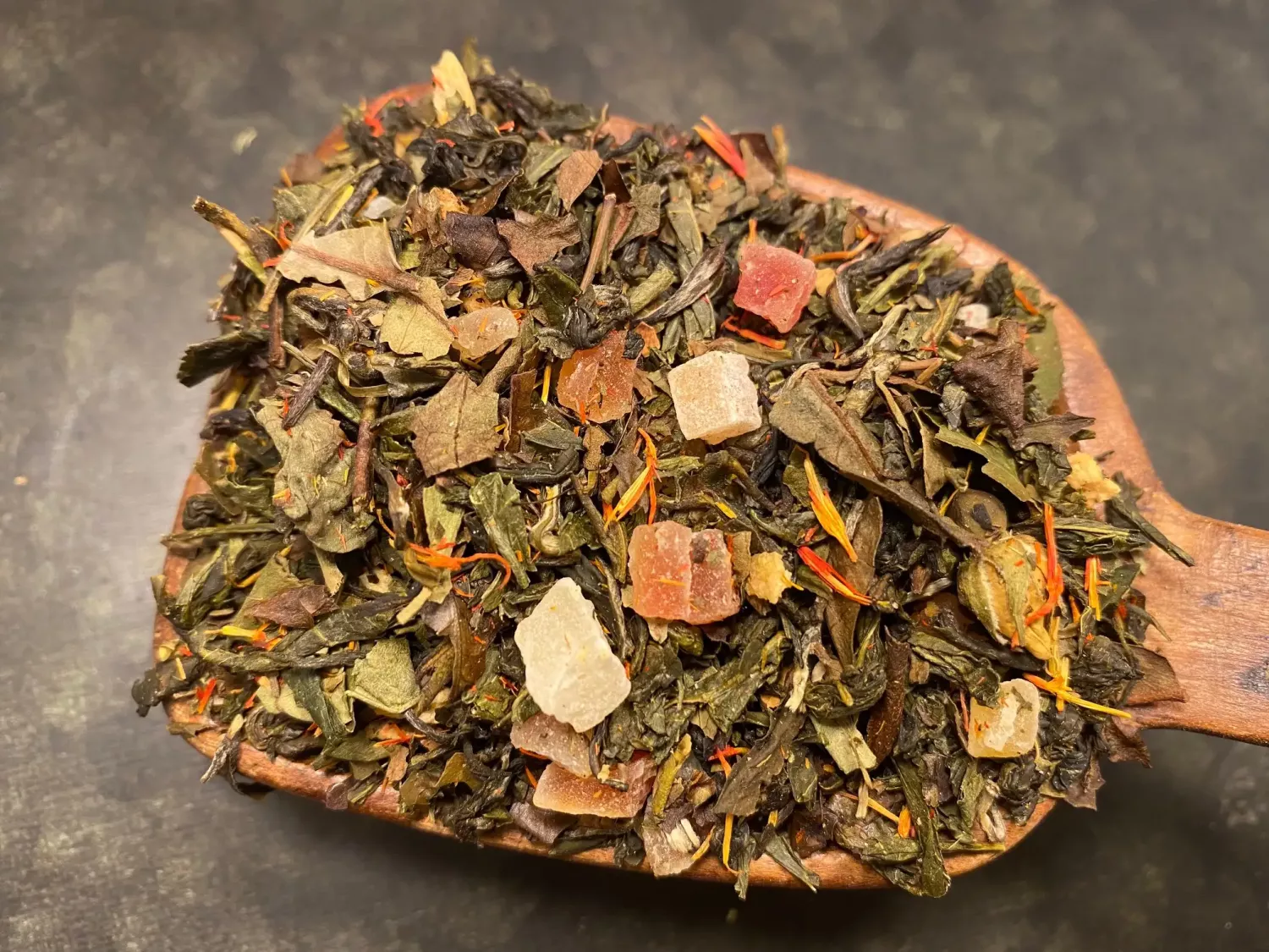 One of my go to teas! It Contains: Green tea (China Sencha), Melon pieces, Candied Mango, Apple pieces, flavors and strawberry pieces. A really good and tasty melon tea: Not much to say, it's a green tea which I love that tastes like melon can't get any better(˶˃ ᵕ ˂˶) .ᐟ.ᐟ
